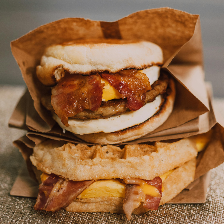 2 bacon rashers, 2 gluten free sausages & scrambled egg served in a gluten free roll. Individually wrapped in foil. Delivered warm with a ketchup sachet.